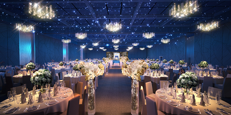 Bữa tiệc của đám cưới sẽ hoàn hảo hơn nếu ánh sáng phù hợp với không gian, đèn Led chiếu điểm được lắp đặt để làm nổi bật lên sân khấu chính, là nơi chứng minh cho một gia đình nhỏ được bắt đầu